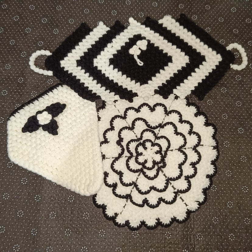 El Örgüsü Siyah Beyaz Banyo Süngeri Seti