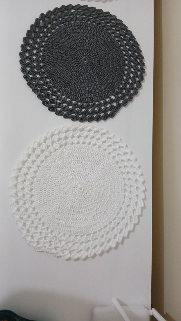 El Örgüsü Siyah ve Beyaz Yuvarlak Örtüler