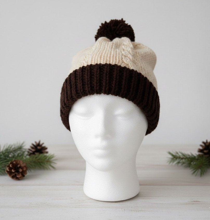 El Örmesi Ponponlu Bere - Krem & Acı Kahve