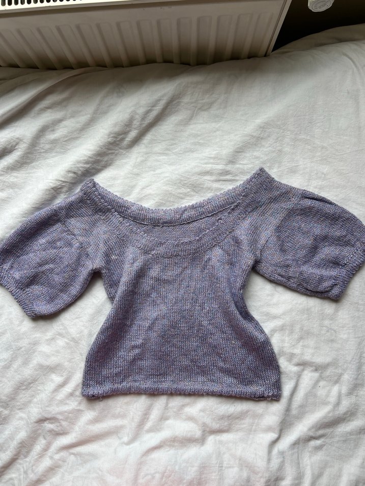 34/36/38 için uygundur, el örgüsüdür, omzu açık durur balon kollu hafif crop
