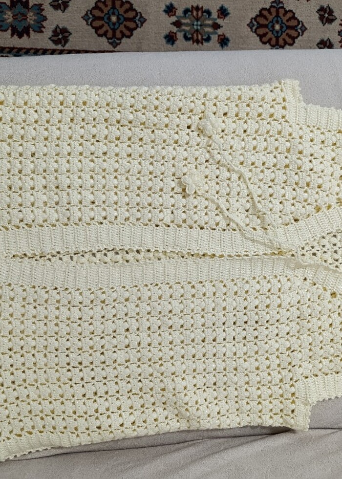 Simli iplikten 38 bedene uygun el örmesi yelek. İster hediye alın işte giyin ister çeyizinize ekleyin krem rengi