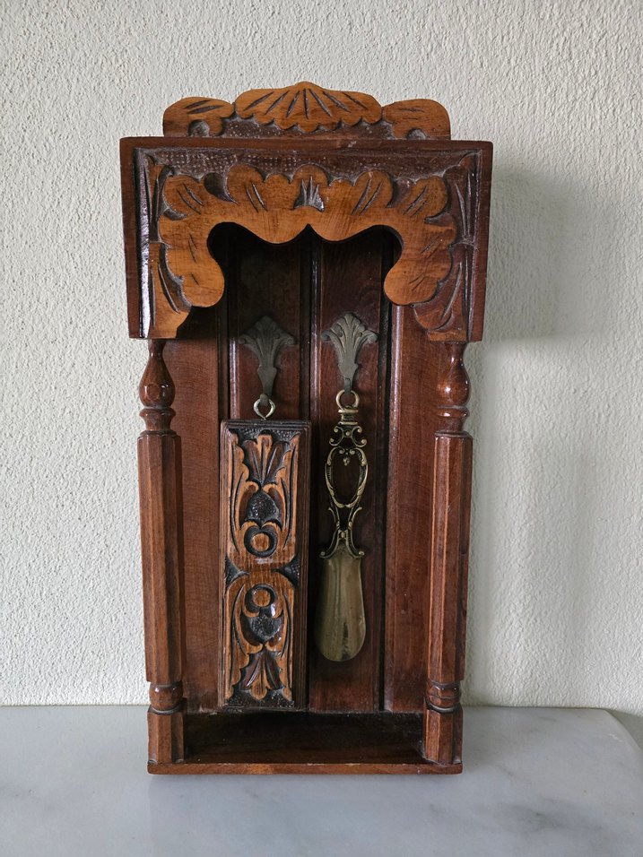 El oyma ahşap ayakkabı aksesuarı orijinal fırçası ve pirinç kerata ile birlikte. Anahtarlık olarak da kullanılabilir. Ölçüleri resimlerde mevcuttur, duvara asılıp kullanılabilir. Dönem ürünüdür, artık bu gibi objeler pek yapılmıyor. Herhangi bir kusuru yoktur. İade kabul edilmemektedir. #ayakkabılık #eloymaahşap #ahşapanahtarlık #ayakkabıfırçası #kerata #pirinçkerata