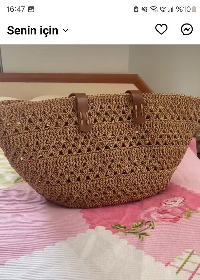 El tapimi plaj çantası, örgü çanta 40 cm uzunluk