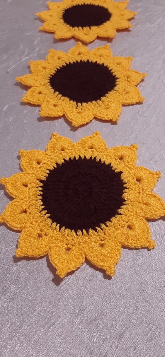 El Yapımı Ayçiçeği Motifli bardak altlığı