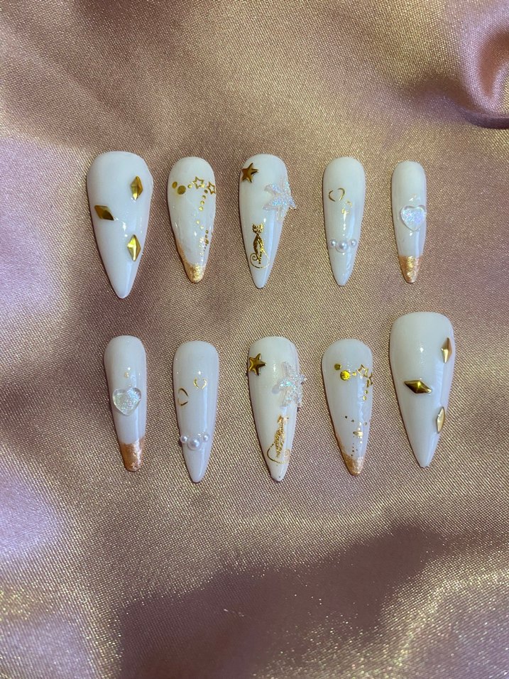 Ürün Detayları: • Model: Beyaz zemin üzerine gold kedi figürü, ışıltılı yıldızlar ve zarif inci detayları. • Beden: Fotoğraftaki ürün M Beden ölçülerindedir. • Durum: El emeği ile özenle hazırlanmış, sıfır ürün. Full Paket İçeriği (Uygulama Kiti Hediye!): Her siparişinizde, tırnaklarınızı profesyonelce uygulamanız için gereken her şey pakete dahildir: • 10 Adet Size Özel Tasarım Tırnak • 12 Adet Güçlü Jel Bant • 1 Adet 9.5 cm İtme Çubuğu • 1 Adet Mini Törpü Ölçü ve Beden: İlanın son fotoğrafındaki beden tablosunu inceleyerek kendi tırnak ölçülerinizi belirleyebilirsiniz. Eğer M beden size uygun değilse, XS veya S seçenekleri icin dm