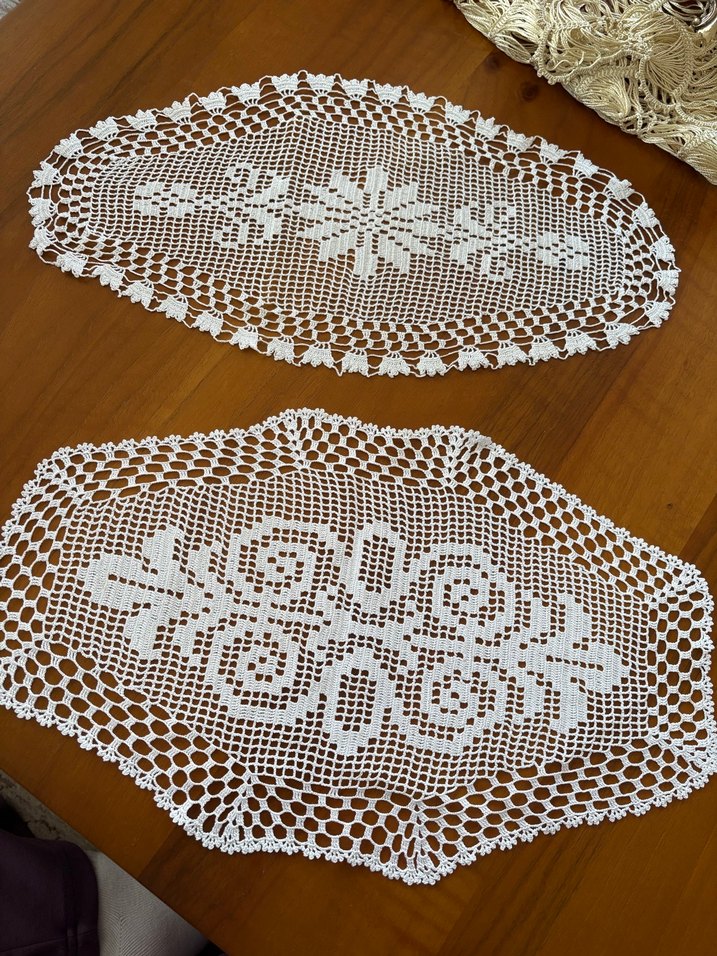 El yapımı beyaz dantel masa tepsi örtüleri