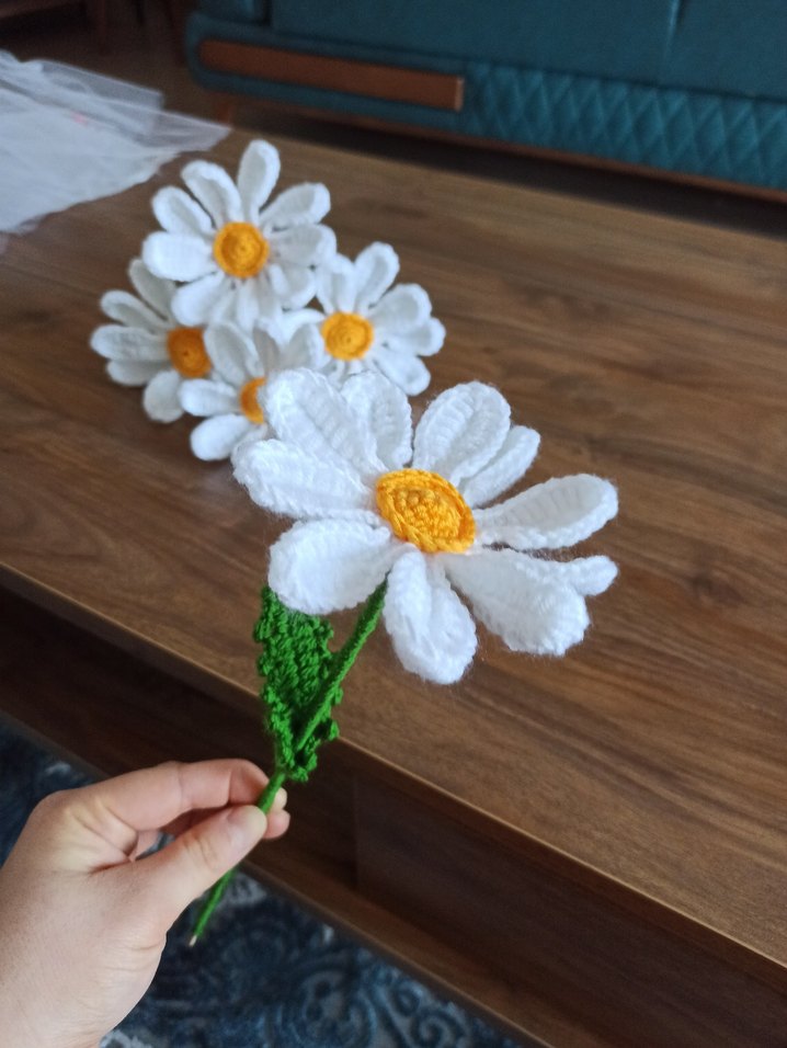 El Yapımı Beyaz Papatya Motifli Örgü Çiçek