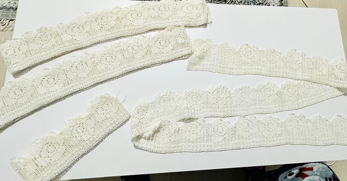 Krem renginde, el yapımı bohem tarzda ince desenli dantel şeritler, dekoratif el işleri için uygundur.