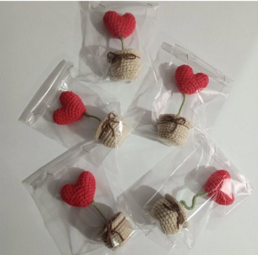 El yapımı bohem tarzda, küçük tığ işi saksılarda kalp şeklinde bitki süsleri, tek tek paketlenmiş. ❤️ adet fiyatidir