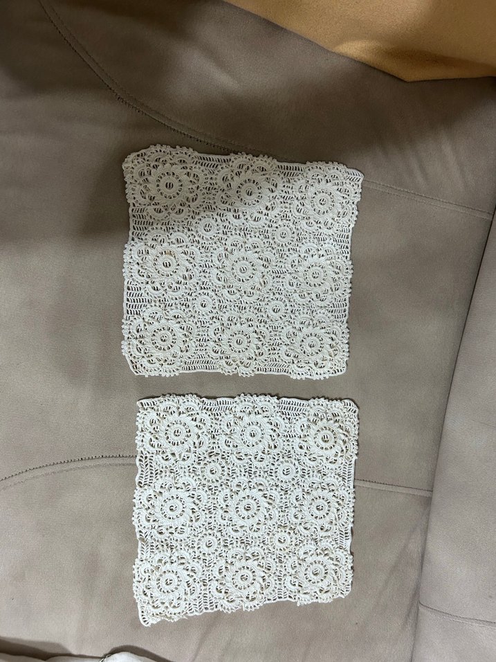 El yapımı, dairesel detaylara sahip bohem dantel kırlent kılıfı, dekoratif el işleri için uygun.