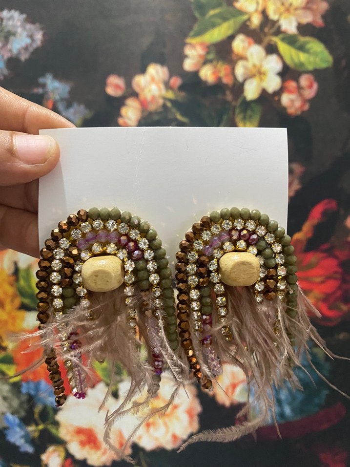 Tamamı elyapımı tasarım renkli boncuklar ve yumuşak tüy detaylarına sahip kısa küpeler, parti için uygun. #küpe #takı #aksesuar #abiyeküpe #saat #çanta