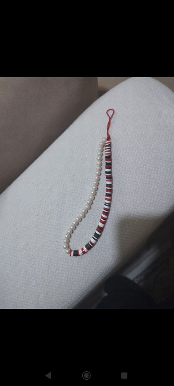 İnci ve fon boncuklardan oluşan telefon askısı telefon charmı. El yapımı. Yeni ürün