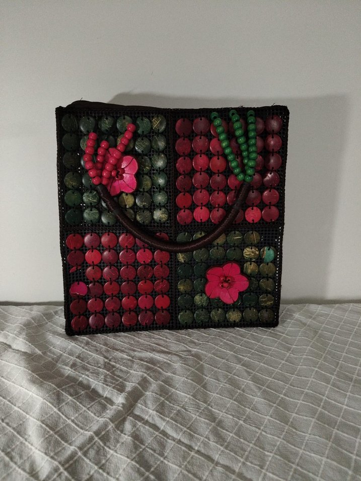 El Yapımı Boncuklu Çiçek Desenli Bohem Kadın Çantası