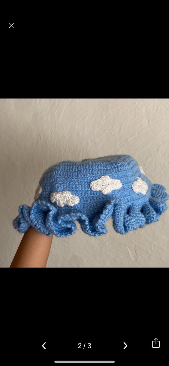 El yapımı bulut desenli mavi şapka hiç kullanılmamış