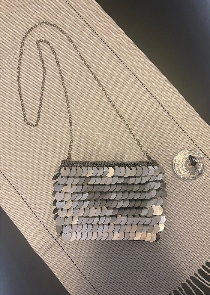 El yapımı gümüş pullu çanta