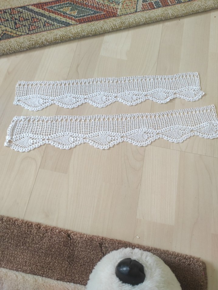 El yapımı, narin dalgalı desene sahip dantel kenar süsleme, tekstil ve el işleri için uygundur. dantel ister havlu kenarı ister başka birşeyle değerlendirilebilir yeni naylon iple örülmüş ütü istemez uzunluğu biri 42 santim birtaneside 46 santim