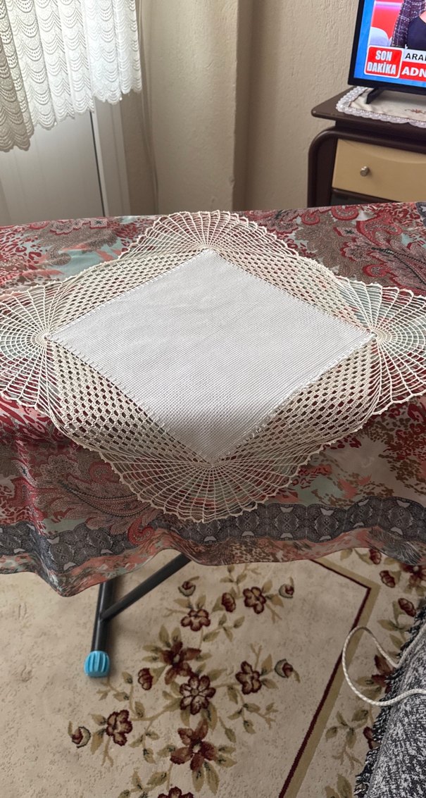 El yapımı dantel masa örtüsü, detaylı tığ işi 50 50cm hiç kullanılmadı
