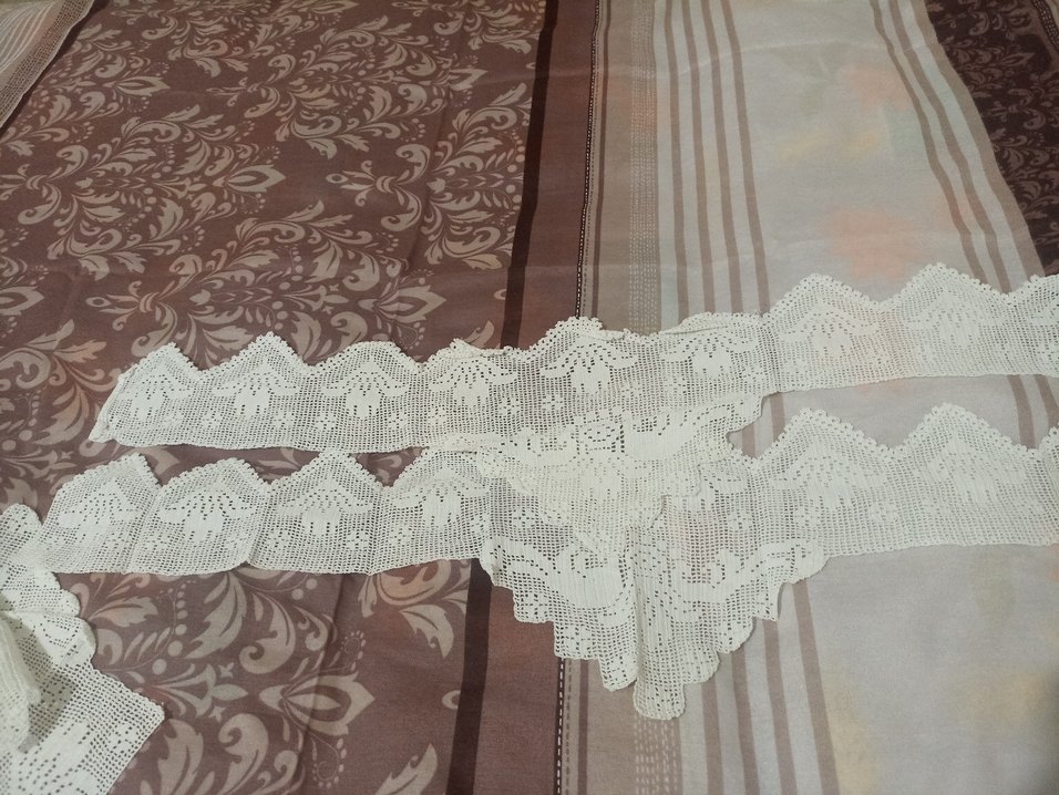 Geleneksel tarzda işlenmiş, detaylı desenlere sahip el yapımı dantel şeritler. Tekstil süslemeleri için uygundur.