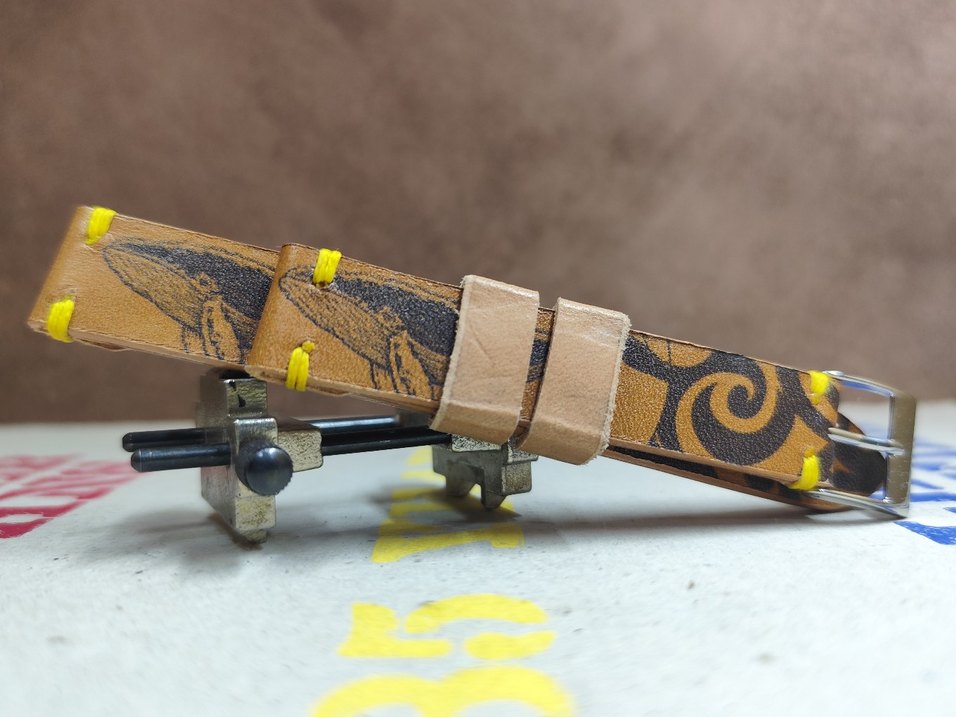 El yapımı deriden whales&maori kordon. Vaketa deriden el yapımı balina ve maori baskılı saat kordonu. 18 mm.lik lug aralığındadır. Ürün sıfır, kullanılmamıştır. Meraklısına.