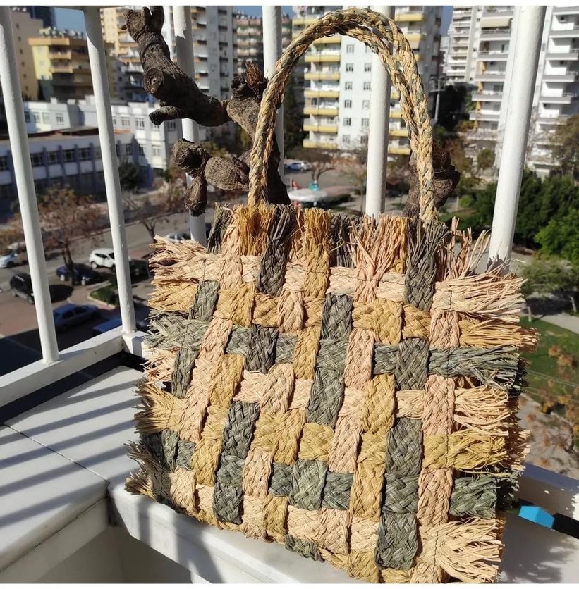 El Yapımı Doğal Muz Lifi ile Örülmüş Etnik Çanta