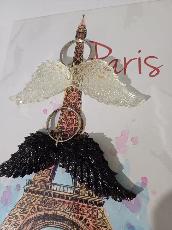 Tamamen el yapımı epoksi anahtarlık. Detaylı kanat dokusu ve şık tasarımıyla dikkat çeker. Set halinde (fotoğraflardaki ürünler).