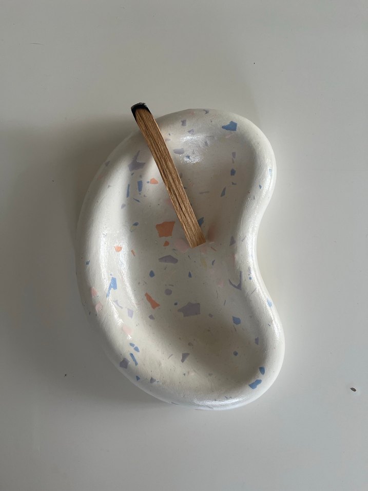 El yapımı Fasülye şekilli dekoratif tabak taş tozuyla hazırlandı üstü vernikli