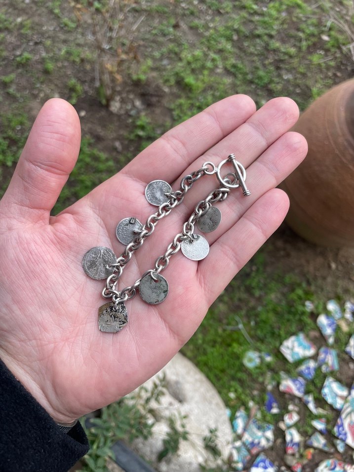 El yapımı gümüş bileklik Osmanlı gümüş paralı
