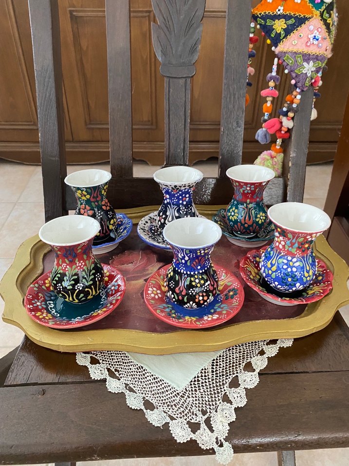 El yapımı güzelliği ile altılı çini çay seti