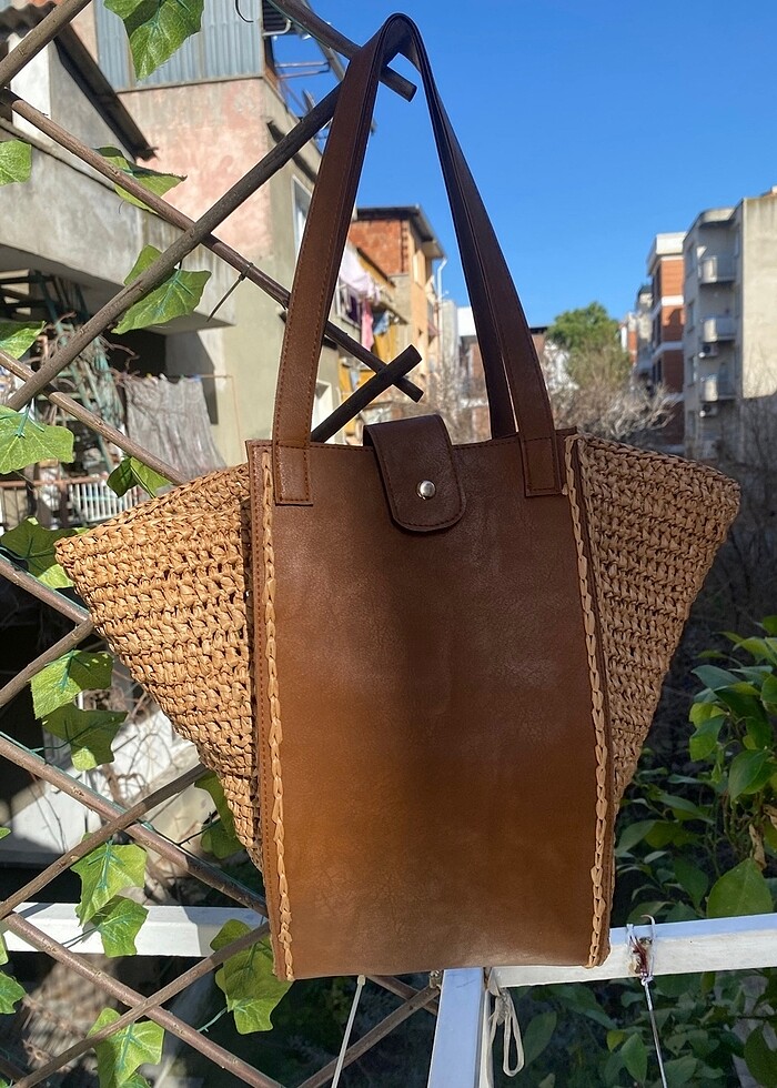 El yapımı hasır deri çanta çok şık yazlık çanta