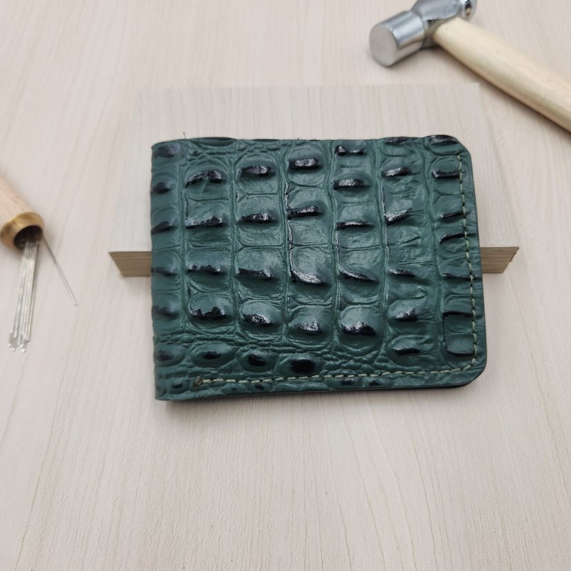 El Yapımı ve El Dikimi Koyu yeşil Timsah desenli erkek cüzdanı, klasik ve minimalist tarzda tasarlanmıştır.