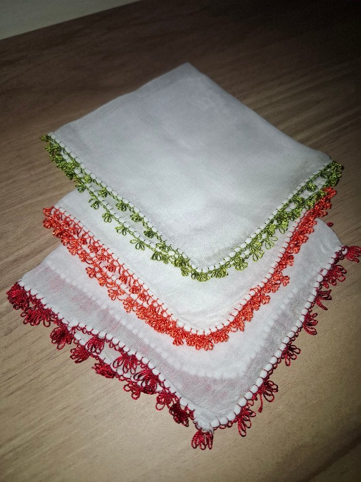 Yeni yapıldı. El yapımı. İğne oyası bebek mendili. 3 adet.