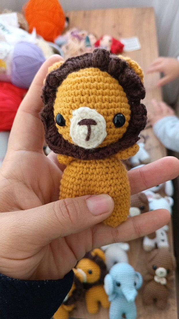 El yapımı kahverengi aslan peluş oyuncak, renkli detaylara sahip, yumuşak ve elde tutulacak kadar küçük. 15 adet