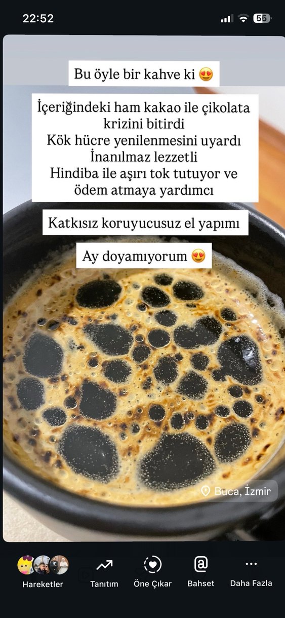 Buca, İzmir'den katkısız ve koruyucusuz el yapımı Türk kahvesi. Ham kakao ile çikolata krizini bitirir, kök hücre yenilenmesini destekler, hindiba ile tok tutar ve ödem atmaya yardımcı olur. ☕