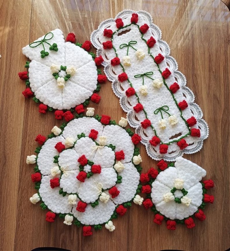 El Yapımı Kırmızı Beyaz Örgü çeyizlik lif