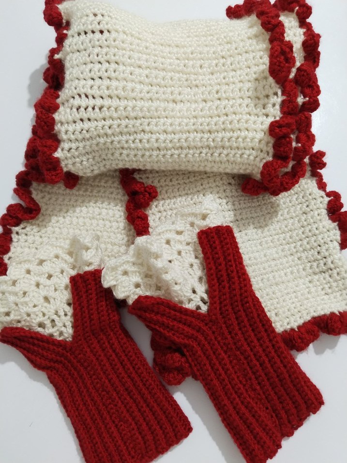 El emeğiyle örülmüş kırmızı fırfırlı atkı ve uyumlu parmaksız eldiven seti, kış kombinlerine hem sıcaklık hem de zarif bir vintage dokunuş katıyor. Yumuşak dokulu iplikle hazırlanan tasarım, günlük kullanım ve özel kombinler için de idealdir. İstenilen renkte ve ölçüde örebilirim.