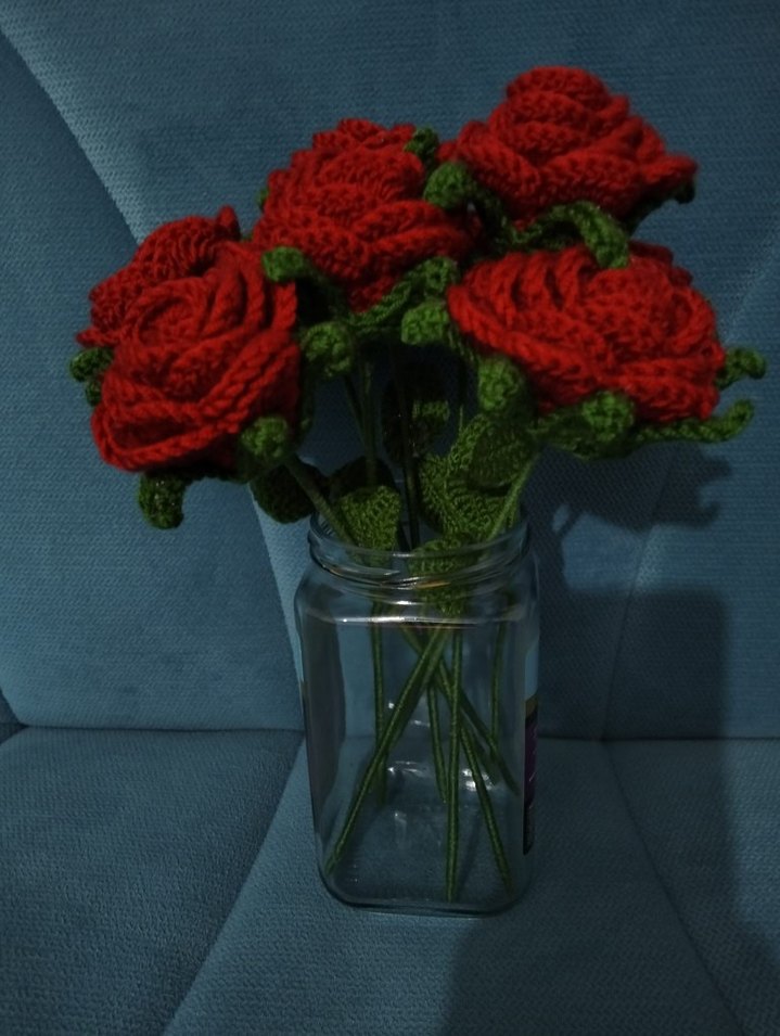 El Yapımı Kırmızı Örgü Güller