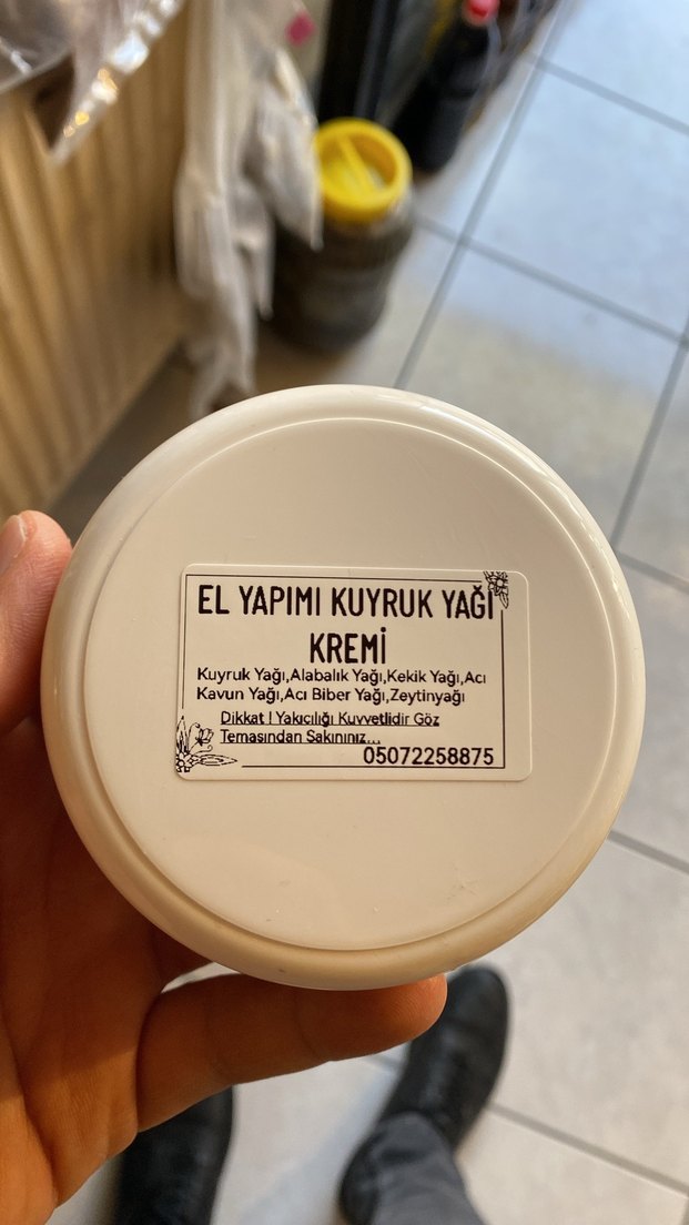Ağrı Kesici Kas Gevşetici Bel Boyun Fıtığı Ağrılarına Bibebir El yapımı kuyruk yağı kremi, kuyruk yağı, balık yağı, kekik yağı, acı kavun yağı, acı biber yağı ve zeytinyağı içerir. Göz temasından kaçının. Yakıcılığı Kuvvetlidir.