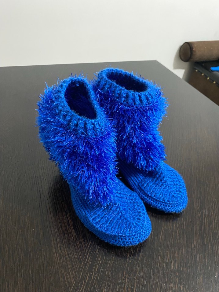 El Yapımı Mavi Kışlık Patik – Sıcacık, 37–38 Numara (24 cm)