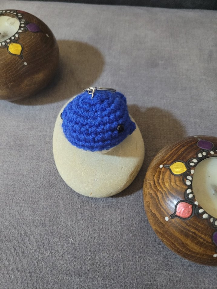 El Yapımı Mavi Örgü Balina Anahtarlık