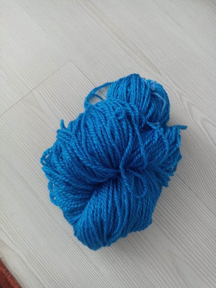 Kalın dokulu el yapımı mavi örgü ipliği, çeşitli el işleri için uygundur.