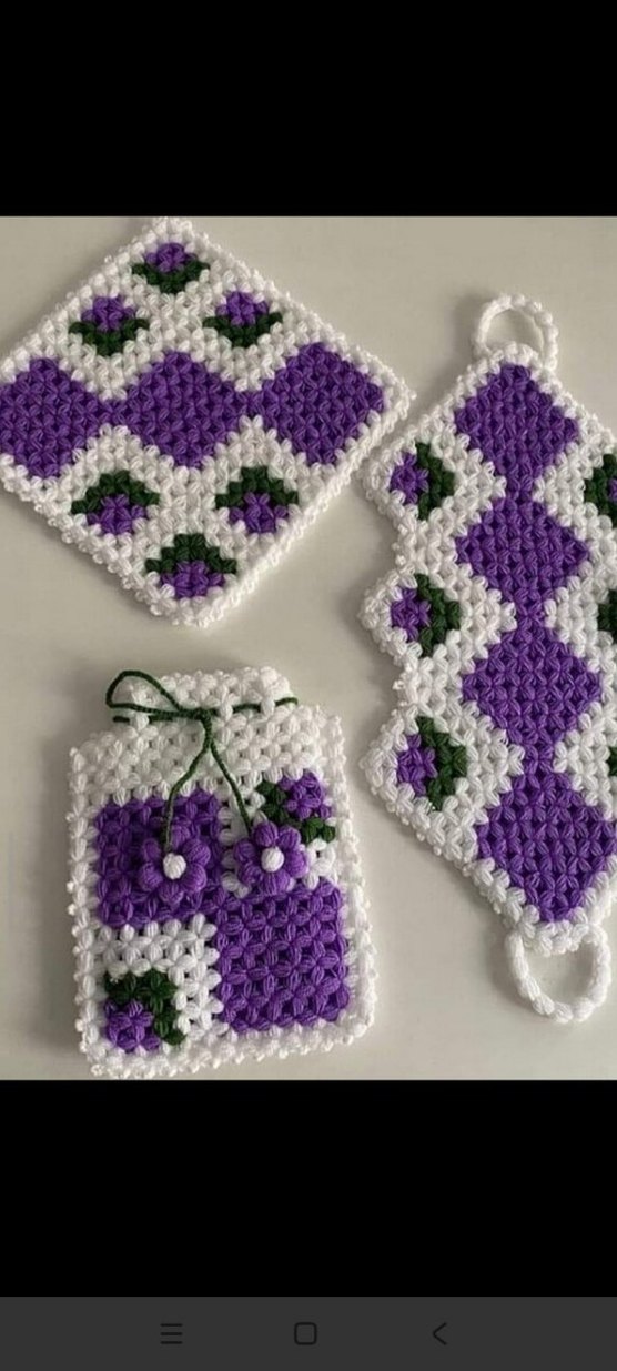El Yapımı Mor Beyaz Örgü Mutfak Seti