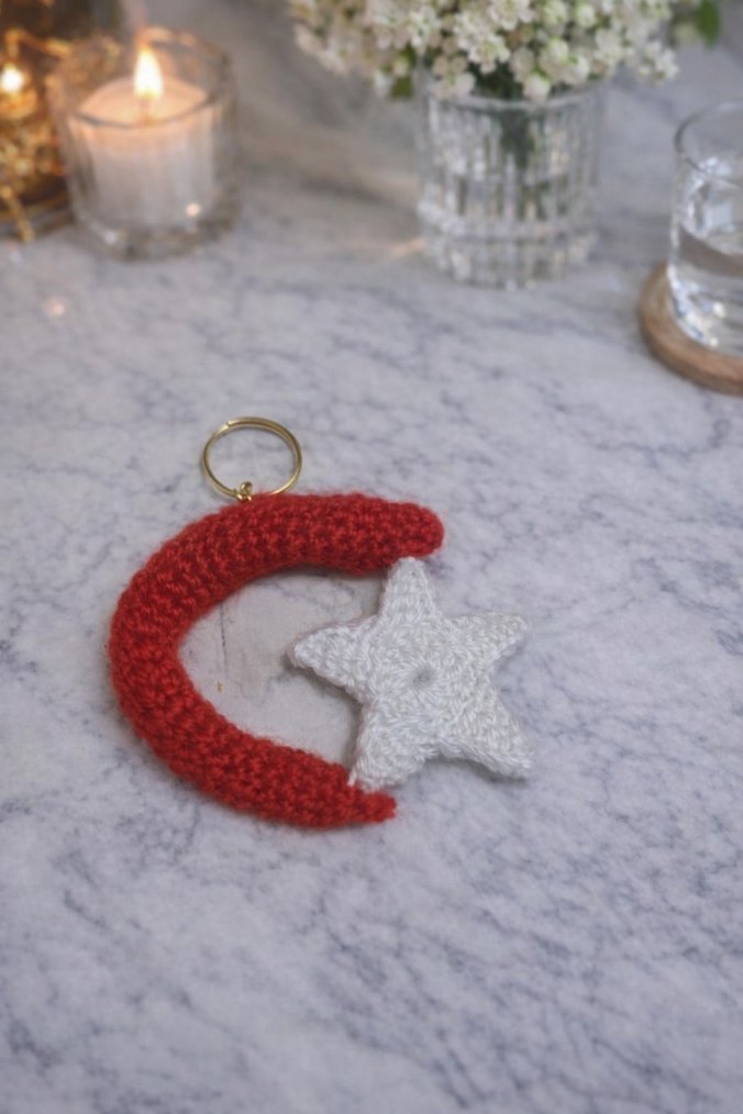El Yapımı Örgü Ay Yıldız Anahtarlık