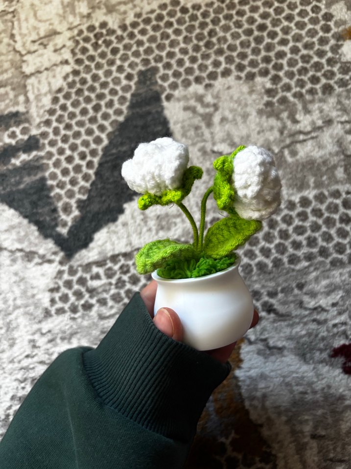 El Yapımı Örgü Beyaz Çiçek ve Saksı