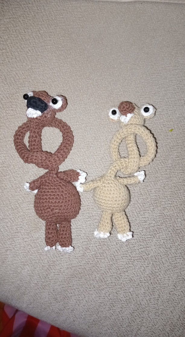 Büyük gözlü, halka şeklinde gövdeye sahip kahverengi ve bej tonlarında el yapımı örgü peluş oyuncaklar. Yumuşak ve rahat kullanıma uygundur. Özel sipariş alınır. Adet fiyatıdır.