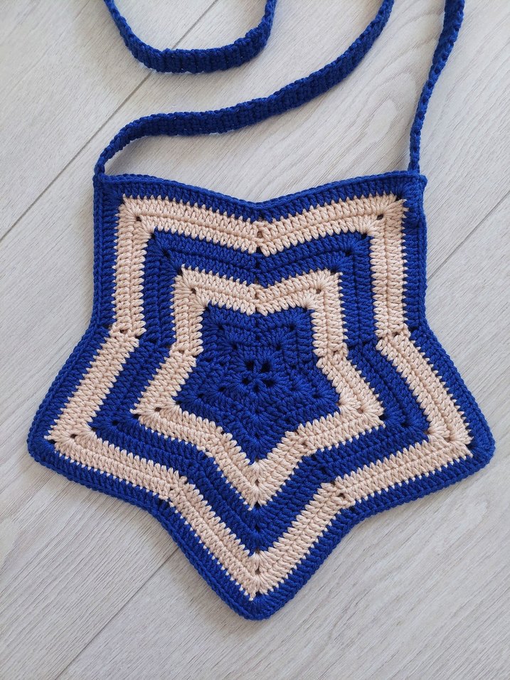 Satın almaya hazır ürün. El Yapımı Örgüdür. Peria Cotton ip ile muntazam şekilde örülmüştür. Ürün sıfır durumdadır. Yıldız desenli, örgü kadın çanta. Rahat bohem tarzıyla günlük kullanıma uygun.