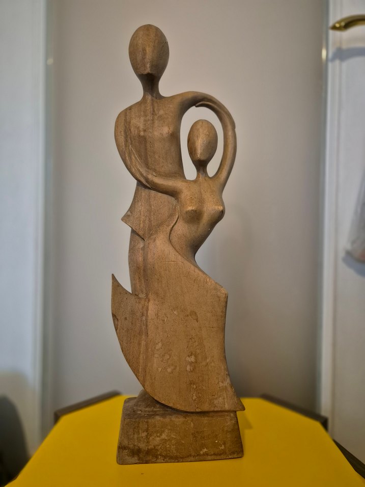 Kapanan mağazamızdan,El yapımı,Bej renkte, doğal dokulu ahşaptan yapılmış soyut çift figürini, sanatsal bir duruşu yansıtıyor. Mekâna zarif bir dokunuş katıyor.