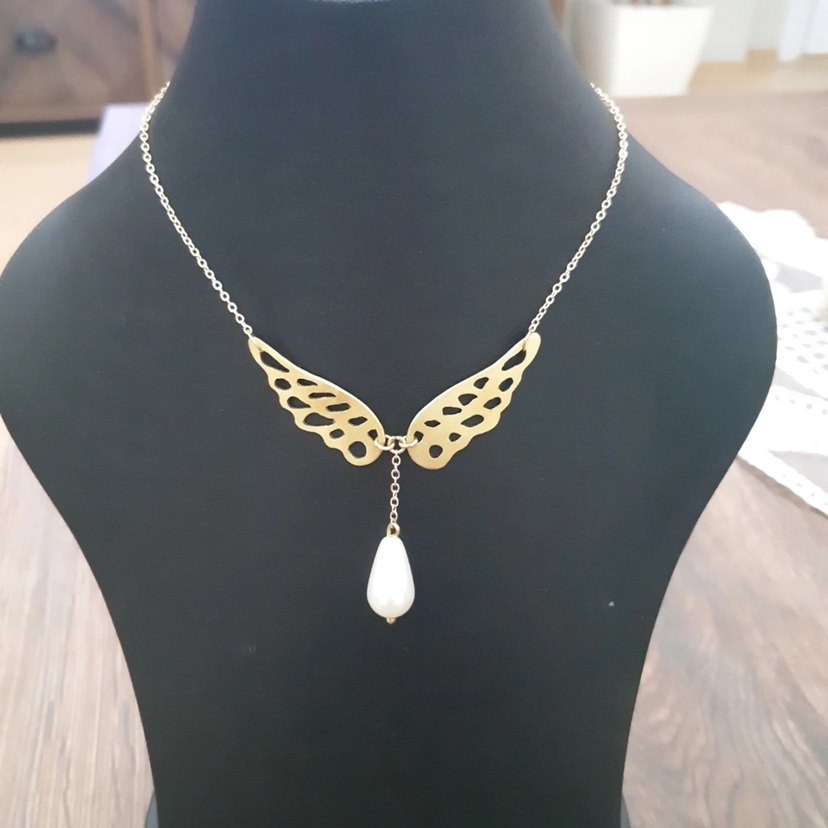 El yapımı Pirinç Zincir Detaylı Kanat modelKolye