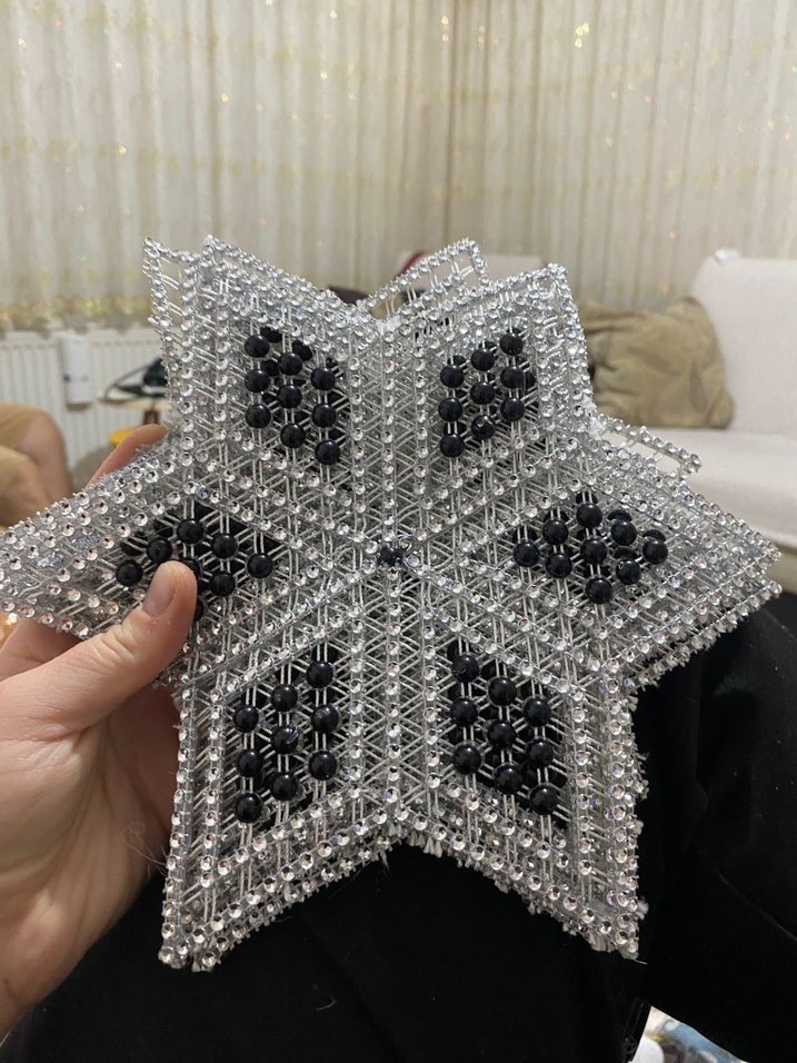 Metalik gümüş ve siyah boncuklarla el yapımı yıldız şeklinde rock punk tarzı süsleme. ✨ 5 li
