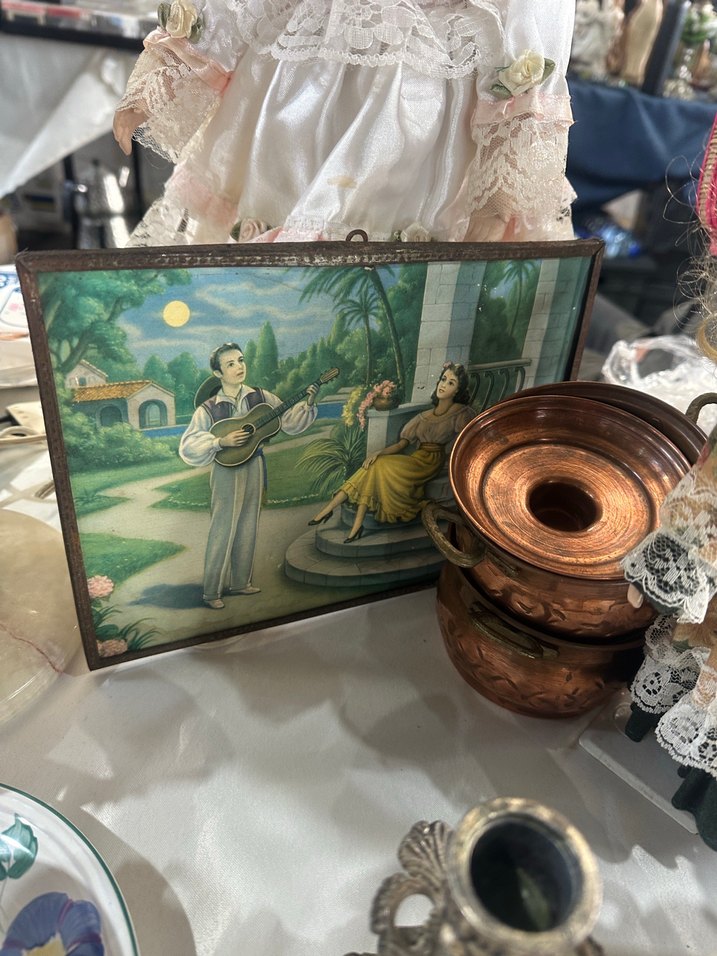 Romantik sahneyi gösteren el yapımı dekoratif tablo Limogesten geldi