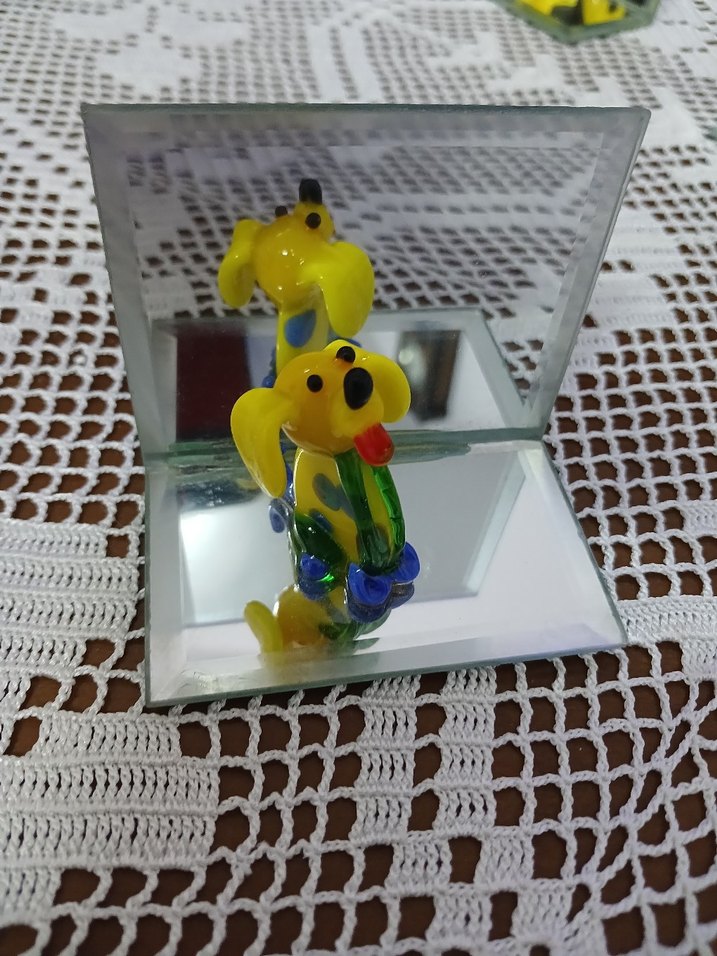 swaravski stili kristal el yapımı köpek. Alt ve arkası aynalı, köpek figürü ise üfleme cam, usta el işçiliğiyle tasarlanmış .kusursuz . canlı renkler. yükseklik 6cm genişlik 7cm derinlik:4cm .